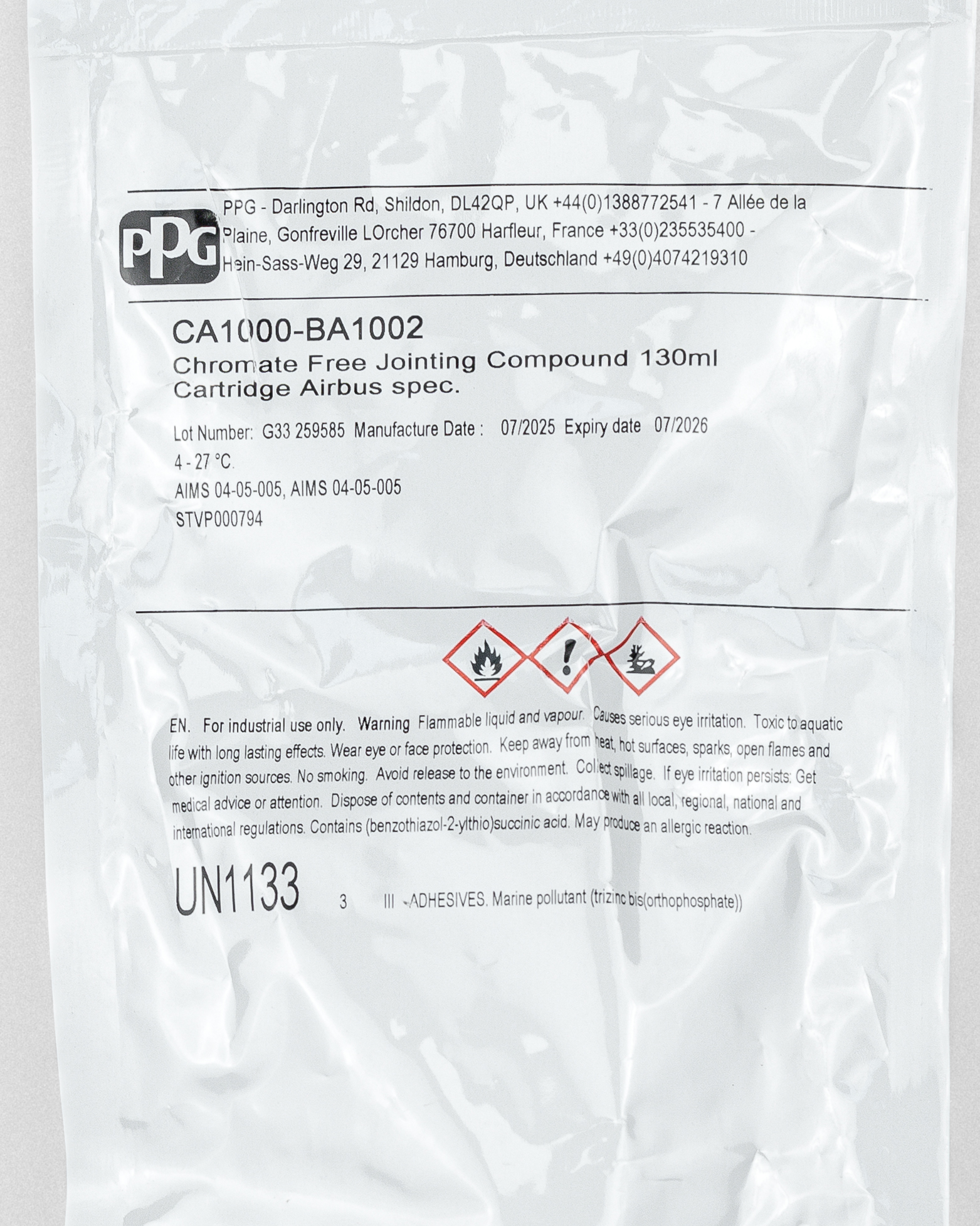 PPG CA1000-BA1002 is a versatile aerospace sealant ideal for various applications, including but not limited to sealing joints, seams, and gaps in airframes, wings, and engine components. Its versatile formulation and compatibility with primed substrates make it suitable for use in both commercial and military aviation contexts.
